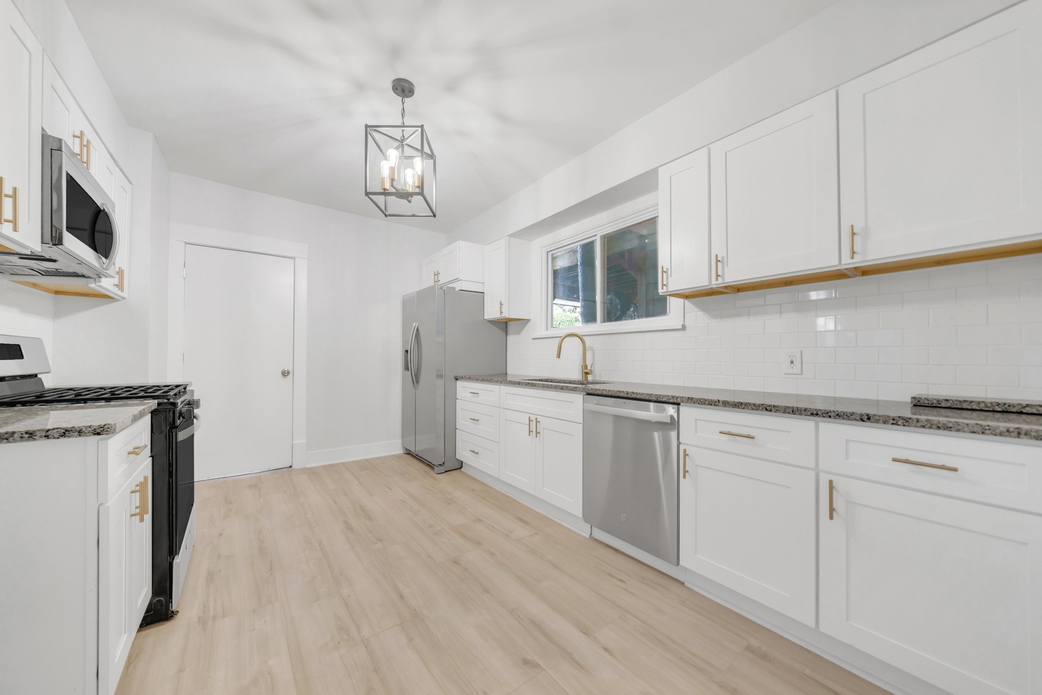 • Formal dining room, new floors, updated kitchen with granite counters, stainless steel appliances. First floor laundry room.